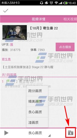 1)打开【哔哩哔哩动画】,进入首页后,点击一个【视频】进入到详情页面。(如下图)