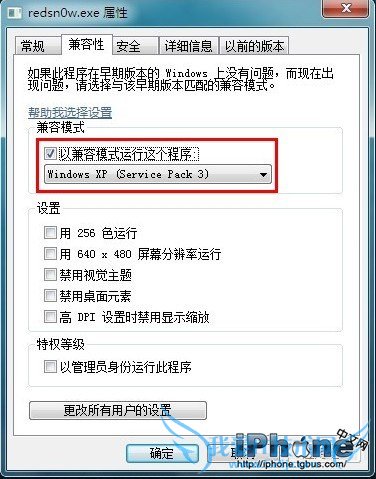 注意:Windows 7及 Vista 用户,请将 RedSn0w(红雪) 调教为 XP 兼容模式。