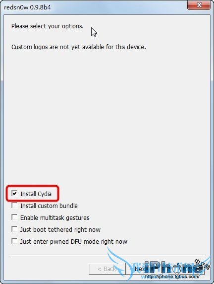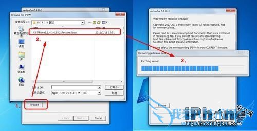 第二步:使用红雪 RedSn0w 0.9.8 b4验证固件