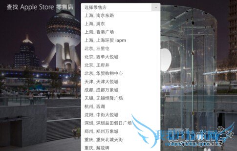 2接下来在 Apple Store 零售店页面,可以查询全国各地所在的零售店,如图所示