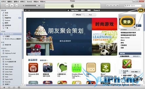 1、打开iTunes软件,点击左侧边栏里的STORE,进入商城的首页,点击右上角的登陆,输入你的苹果ID(iTunes帐号)和密码,之后点击您的ID。