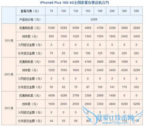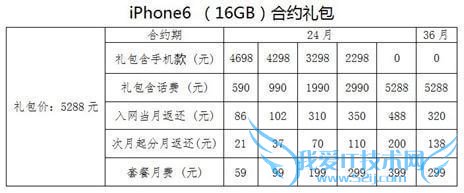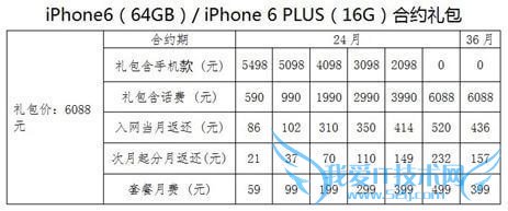 iPhone6Plus合约机套餐信息 移动/联通/电信