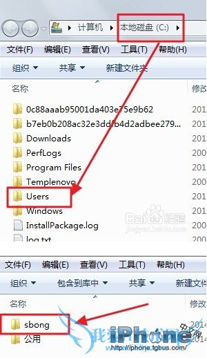 2.进入C盘后找到【Users】文件夹点击进入,进去后找到【你的用户名】点击(一般用户名是默认的Administrator,如果你曾经改了,就点你改过的名字,如图我的名字改过。)