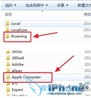 4.进入AppData文件夹后,点击【Roaming】文件夹--进入后点击【Apple Compute】文件夹,