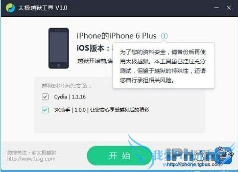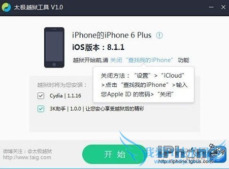 首先下载越狱软件,小编在此展示的是太极越狱工具。