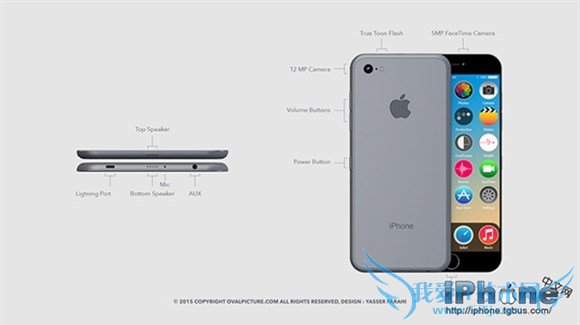 摄像头方面,iPhone7像素数将增至1200万,光学防抖、4K录制是必须的,还要支持高达500fps的录像能力。Yasser Farahi还为iPhone7加入了立体声效和无线充电功能,以及图标全部正圆化的iOS9新系统。