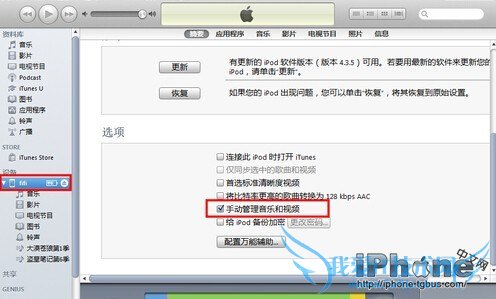 手动导入需要在设备信息页的下方,勾选“手动管理音乐和视频”。