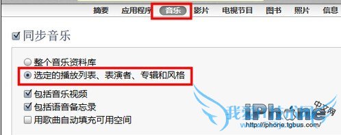 另外,也不是每次同步都必须将整个资料库的内容都导入iPhone,我们也可以根据自己的需要,有选择性的进行同步。