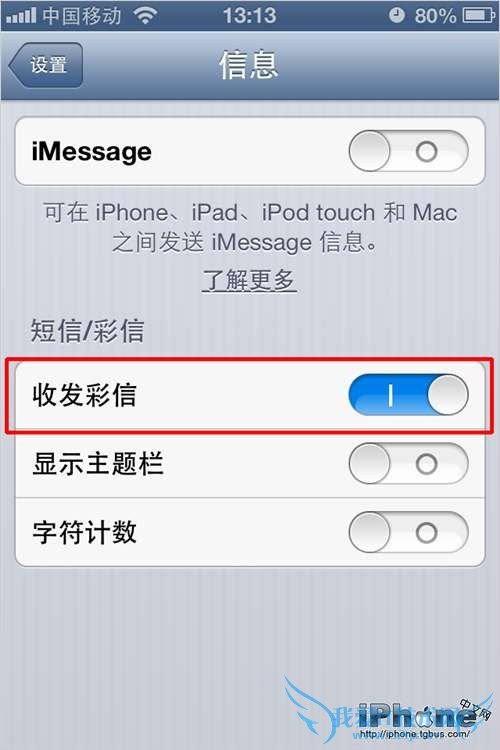 相关问题:iphone5怎么设置才能收发彩信?