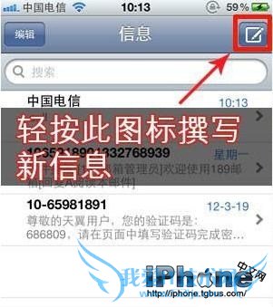 2、轻按右上角图标撰写新信息,进入发送短信界面。
