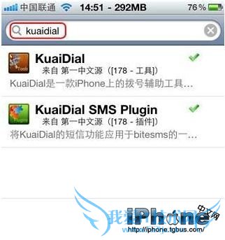 1、确保你的iPhone已经越狱,之后我们需要安装一款名为KuaiDial的群发短信插件。运行“Cydia”,选择右下角的搜索。