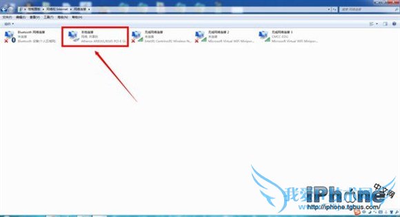4、我们可以看到这里有供电脑连接的各种网络,有线网和无线网络,选择正在使用的网络,这里我使用的是“本地连接”;