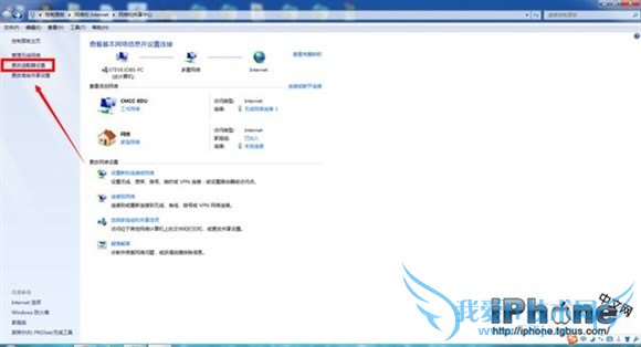 3、接下来在弹出的窗口中左侧选择“更改适配器设置”;