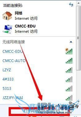2、点击它,在弹出窗口选择“打开网络和共享中心”;