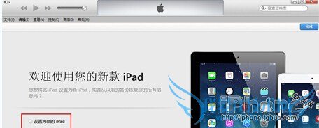 五、恢复完成之后,在iTunes上点击“设置为新的设备”