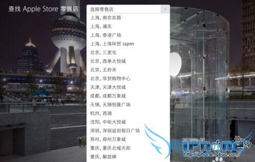2、接下来在 Apple Store 零售店页面,可以查询全国各地所在的零售店,如图所示