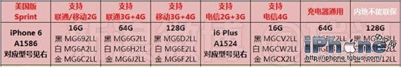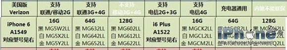 iPhone6美版s版和v版的区别之型号、支持网络制式