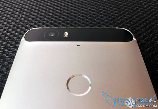 配合Android 6.0加入指纹识别的新特性,Nexus设备首次搭载指纹传感器。它位于Nexus 6P机身背部靠上位置,是个内嵌的小圆圈,看起来和iPhone 6有点类似。使用时握持食指本来就在机身后面,所以触碰起来比较自然,符合人体工学设计理念。当然这是在拿起手机时候的说,如果放在桌子上就别想了。
