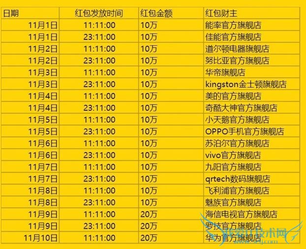一、天猫电器城2015双11支付宝口令红包活动时间: