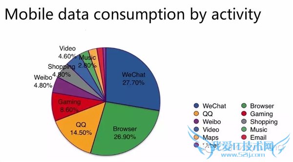 微信成为近30%用户手机上网使用流量最多的应用。用户在微信上的流量为所有应用中的最高,远高于微博,购物,视频,地图,邮件等服务。