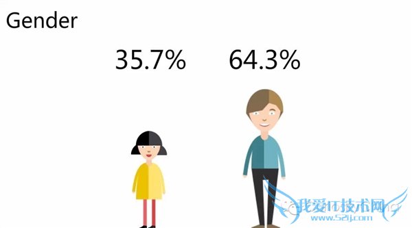 微信用户的男女比例为1.8:1,男性用户约占了64.3%,而女性用户则只有35.7%,用户整体以男性为主。