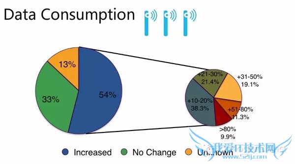 54%的用户认为使用微信后,移动流量的用量增加了。40%的用户微信流量使用占到全部流量30%以上。