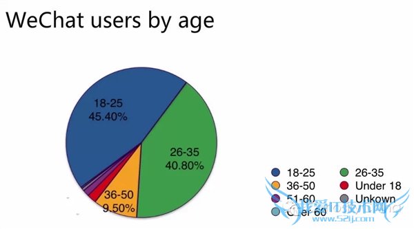 年龄方面,微信用户平均年龄只有26岁,97.7%的用户在50岁以下,86.2%的用户在18-36岁之间。