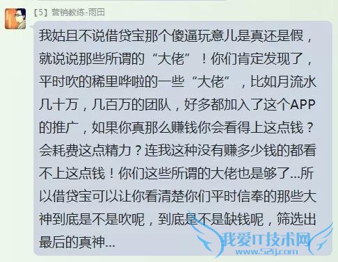 我猜测95%的在那里组群拉人头的人,都没有研究过什么是借贷宝什么是P2P;傻帽公司才会把真金白银给这种推广人员。好公司的推广人员都在做什么?——充分了解产品本身,告诉你注册人人贷你可以做什么;而这些推广的人在做什么?——告诉你注册人人贷可以赚钱,赚冤大头地主老财人人贷的钱,而完全不告诉你注册了之后有什么用,这样推广出来的用户,有价值吗?
