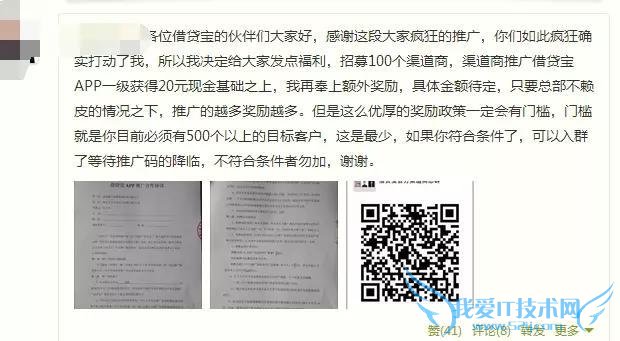 初次知道借贷宝大概是在三四天以前,某位好友发表了一个稳赚不赔空手套白狼的小项目,说是某上市集团狂砸20亿人民币为自己的APP推广,A推广B可得20元,B推广C,B可得20元,A又可以得到10元,一下子惹来很多人围观,鄙人在看到信息的时候也不免心动,意淫计算着把身边的朋友推荐个遍能捞到多少钱……