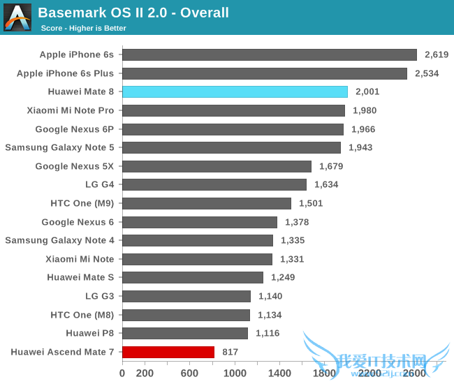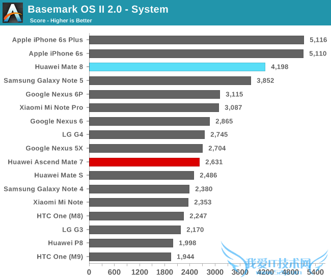 BaseMark OS II 2.0:系统性能安卓夺魁,存储性能勇冠三军无可匹敌,图形性能实在不值一提,Web性能相当出色,整体成绩安卓No.1但没拉开差距。