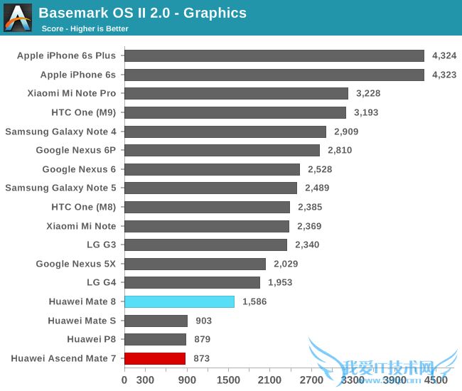 3DMark Ice Storm Unlimited图形得分:比前辈是有了很大进步,但是和三星、高通一众没法比。