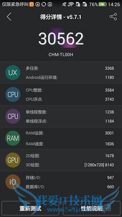 系统流畅度方面,两者差别不大,只要是正常情况下滑动屏幕,系统反应都会比较快速,也很跟手。但在开启应用时就有了明显的差别。小编试了几款自带应用和安装应用,包括时钟、设置、主题、自带音乐播放器、安兔兔测试软件、QQ和地铁跑酷,华为荣耀畅玩4C的开启速度明显要快于TCL么么哒3S,当然这只是对比来说。同时得益于华为EMUI的高度成熟度,EMUI3.0的稳定性和流畅性要比乐蛙OS6好一些。在打开输入法或某些情况,乐蛙OS6还是会出现一些卡顿的情况。