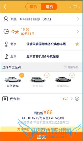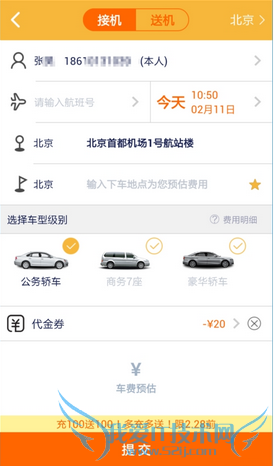 1.服务类型:随叫随到、预约用车、接/送机、日租/半日租