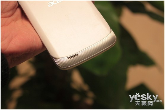 宏碁AK330s的机身背壳采用了细腻的磨砂纹理材质,有别于多数手机应用的钢琴烤漆材质,AK330s采用的磨砂材质具有不沾染指纹、防滑性能好等优势,并且在与圆润弧线侧边设计相结合之后,可以进一步提升用户对AK330s的握持感体验。