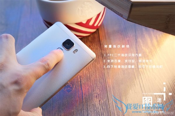 该机一大特色是具备指纹识别功能,最快0.5秒极速解锁,独有指纹自学习功能,自适应多场景。功能方面,下拉触控板看通知,双击清除通知;拍照界面长按指纹,即快速拍照;长按指纹可接听电话、关闭闹钟。