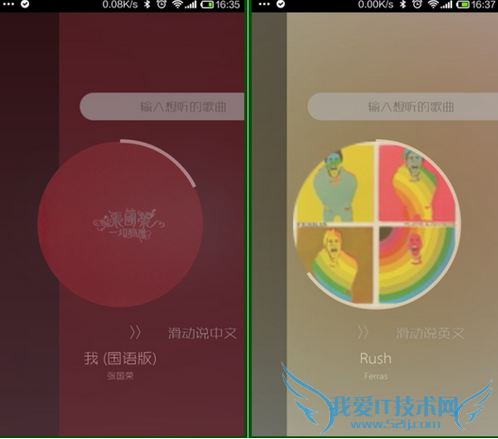 如果正在播放的音乐不爱听的话,可以在歌曲封面以外的任意地方按住屏幕说出你想要的,网络良好的情况下基本都是秒切到你要歌曲.既然听音乐肯定还要有其它操作吧,下面说一下如何:控