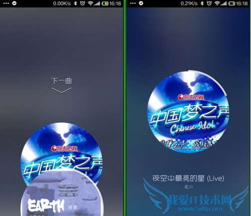 歌曲封面按住下滑切换到下一曲,切换的时候可以看见下一曲的封面会随着你的滑动,滑上上来替换你滑下去的那个封面.封面沉浸效果看着也是不错的!