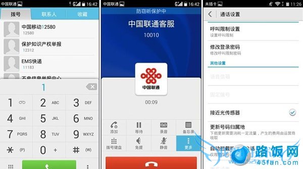 拨号界面支持黄页检索,通话时录音、备忘录等功能也一应俱全,而且支持关闭光传感器的接近操作。