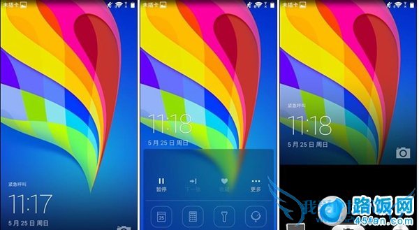 锁屏界面在保留快速相机入口(按住相机图标上滑即可)的同时,新增底部快捷面板,在屏幕底部上滑杰克调出手电筒、镜子等实用功能。