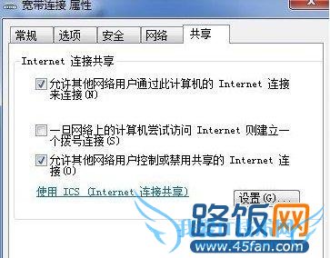 3.打开网络和共享中心,找到宽带连接右击属性---共享---允许其他网络用户通过此计算机的Internet连接来连接,然后点击确定。