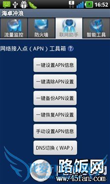 先从最热门的Android手机开始,首先是中国移动接入点的设置方法。由于Android应用非常多,一些应用可以直接完成接入点的设置,而无法手动干预,比如最常用的“海卓APN”软件。用户只需在手机中安装“海卓APN”软件,然后打开软件以后选择“联网助手”选项,即可对手机的接入点参数进行自动设置。点击“一键设置APN信息”或者“手动设置APN信息”,选择“中国移动”运营商就可以设置好了中国移动的接入点。