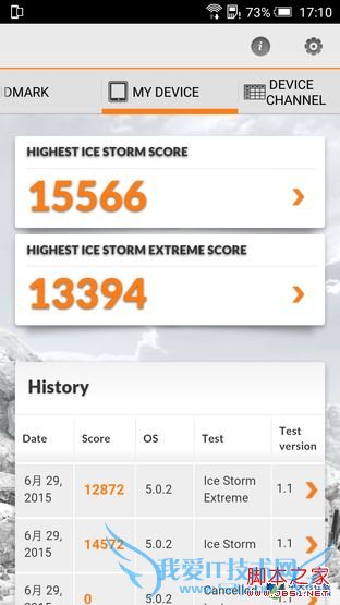 Android与iOS版3DMark通过IceStorm与IceStorm Extreme两个负载场景对设备的图形处理能力进行测试,每个场景通过两段动画检验GPU的图形处理能力,另有一段动画用以检测CPU的物理渲染能力,总成绩中GPU图形测试所占比重更大。