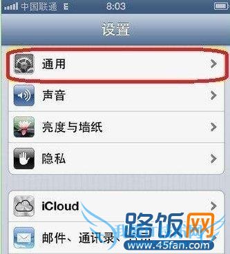 二、在设置列表中找到“通用”选项,点击进入,如下图所示: