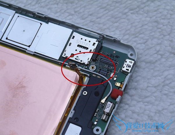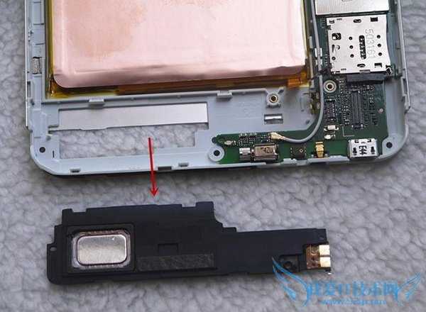 在底部是扬声器,也是有单独的螺丝固定,旁边还有震动模块和数据线接口。