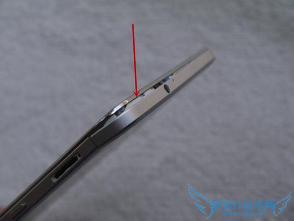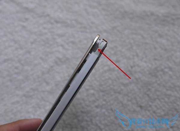 找一个稍微锋利的工具,从顶部的耳机孔地方下手,这里大家要小心点,不要划伤了这个后壳和前面板边缘。