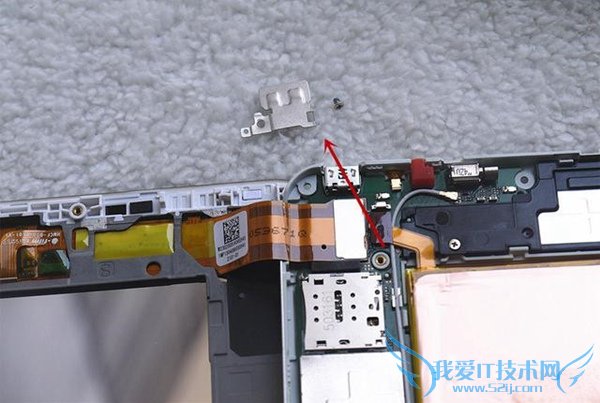 摄像头位置的排线也是通过金属固定架用螺丝来锁紧的,拆掉后置摄像头,就需要拆掉这个金属的固定架。