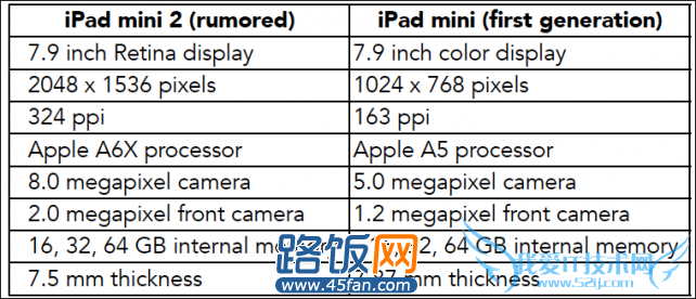 欢迎您访问52ij手机之家,今天小编为你分享的是手机知识是:【配置提升不少!曝iPad Mini 2新参数】,下面是详细的分享!