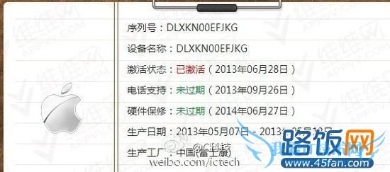 序列号信息还显示,该设备生产商为富士康,而保修截止时间为2014年6月27日。目前情况来看,iPad5量产应该刚刚启动。那么可以初步判断,10月份iPad5应该会正式发布。