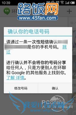 有一点需要提醒的是,安卓平台是所有Google服务都依赖于GMS框架,如果你使用的是国行安卓手机,那么可能需要先自行安装GMS后才能够正常使用Google环聊,而iOS用户就没有这个困扰。首次开启Google环聊,会询问你是否绑定手机号码――看来将IM帐号和手机号绑定是一个大趋势了,Google环聊会自动读取你的通讯录,你可以发送Google环聊注册邀请到特定号码,用起来和微信相似。