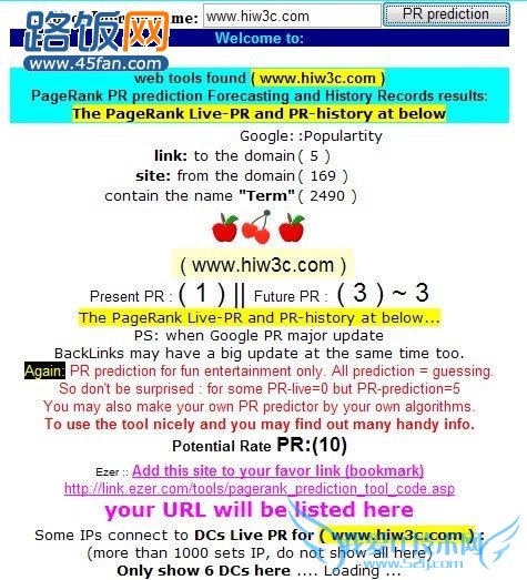 这些网站并不准确,笔者今天给大家推荐一个在线预测PR值的网站,相信有一些朋友使用过,此网站是根据外链数、外链质量来判定PR值的大小。如下图所示: